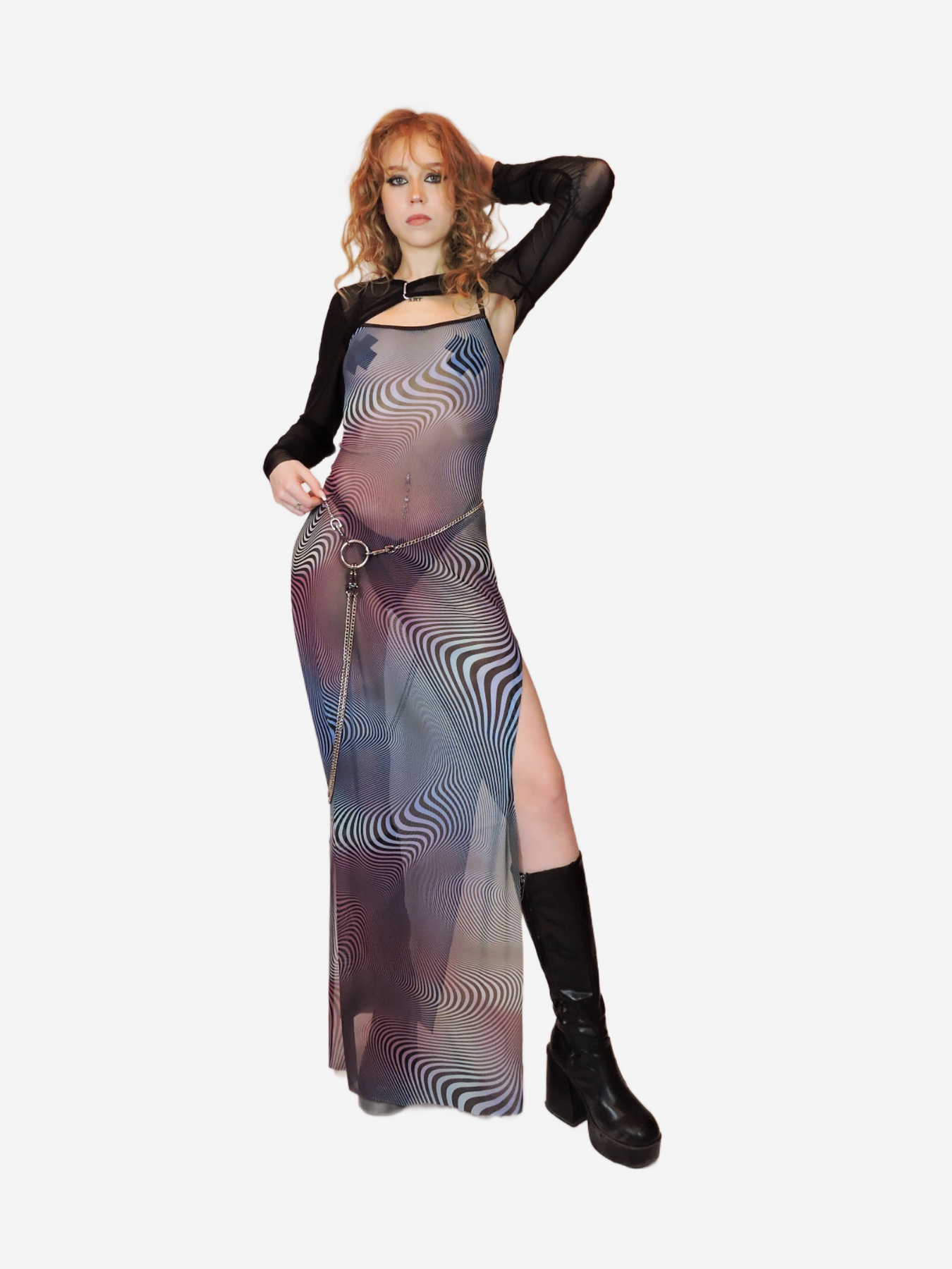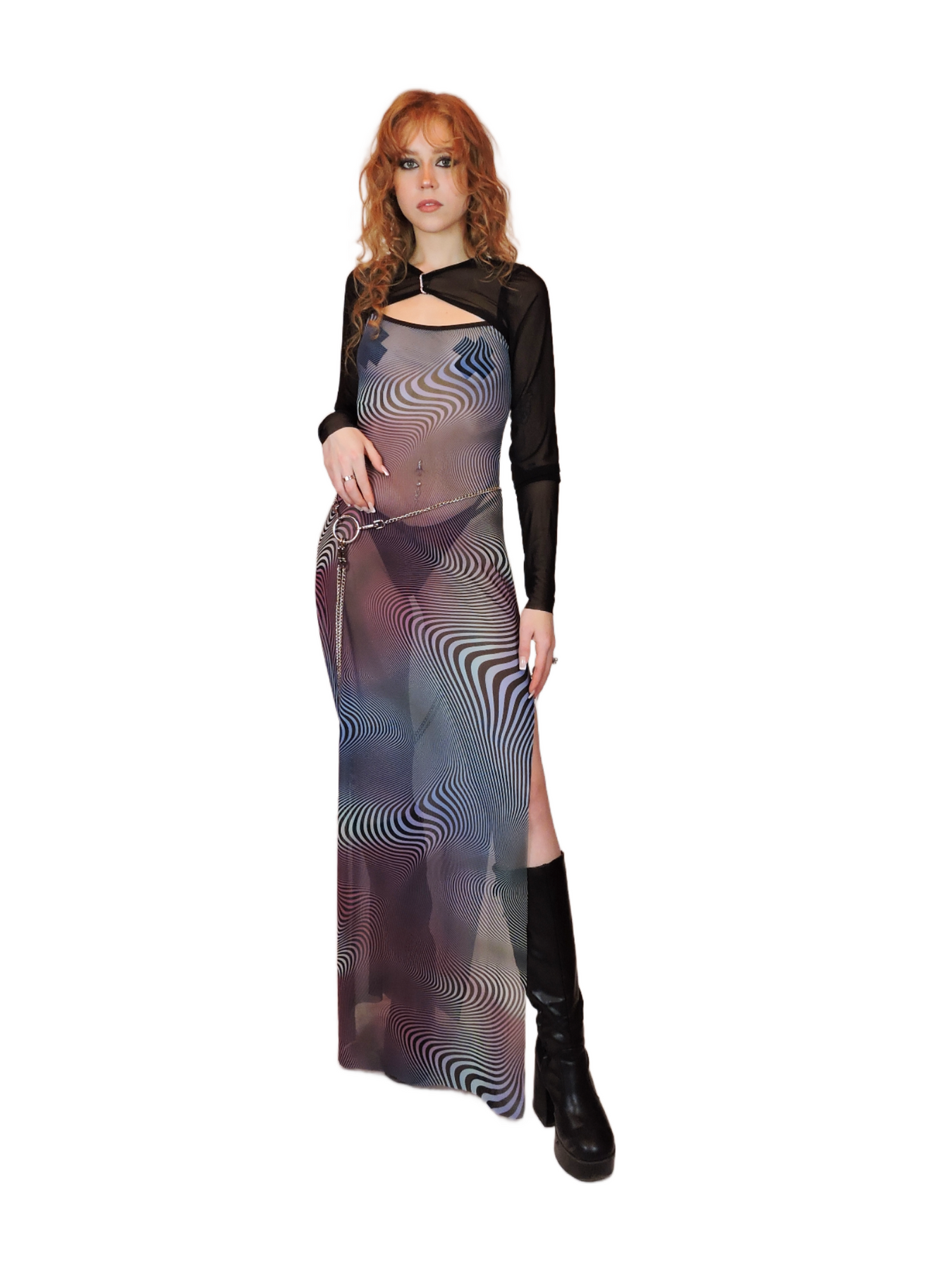 Dive into the NIGHTFALL collection, where edgy silhouettes meet bold prints and daring details. From mesh tops and mini skirts to bodycon dresses, each piece is designed to hug your curves, catch the light, and command attention. Statement chains, rings, and eye-catching prints in black, blue, red, and abstract patterns make every outfit unforgettable. Handmade to order in Berlin, each piece is ready to take your night look to the next level.